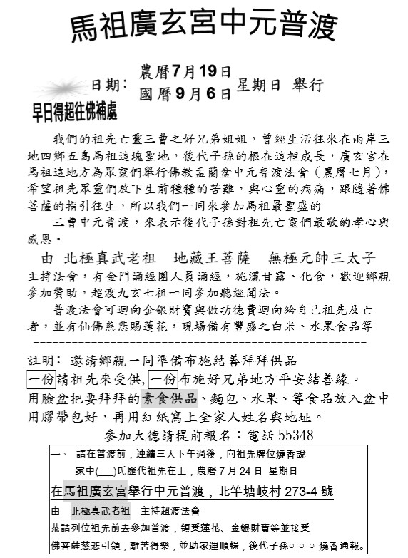 中元普渡盂蘭盆法會通啟