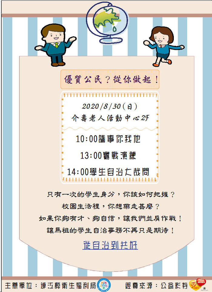 8/30學生自治e起來,倒數名額報名 --閱讀人次 : 753 剩餘名額不多,火速手刀報名~