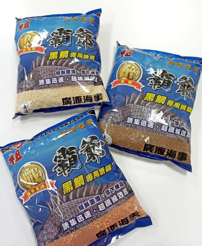 馬祖專屬品牌的「霸爺黑鯛專用誘餌」,在原料中使用馬祖淡菜殼、牡蠣殼及聲名遠播的馬祖製酒剩餘的高粱渣等在地資源,針對黑鯛習性研發成專屬配方,可提高黑鯛的索餌慾望,經測試人員針對遠投性、比重、擴散性、霧化性……等功能,以船釣、磯釣方式反覆嚴謹測試;主打餌料可傾斜飄落、落下接殺,並有誘集迅速、超視線效應等特性。