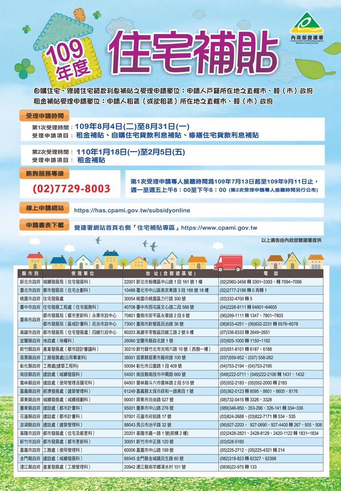 109年度整合住宅補貼[租金補貼]第一次公告受理