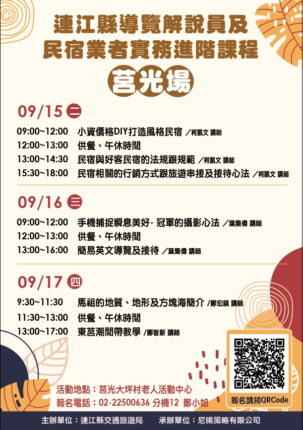 三、 活動對象:馬祖四鄉五島領有地區導覽解說證、華語導遊證或實際在線上帶團者及民宿業者