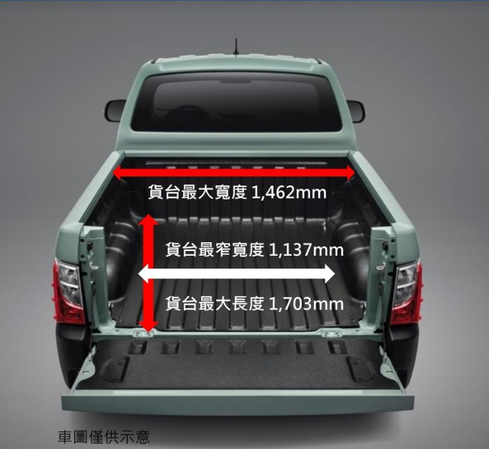 有車頭的貨車!在這個月降臨!!車斗總大長度170公分(1703mm)長,總寬度為146公分(1462mm)總載重可達700公斤,價格親民且實在,安全規格第一!不需要花到百來萬即可擁有霸氣的皮卡,洽詢