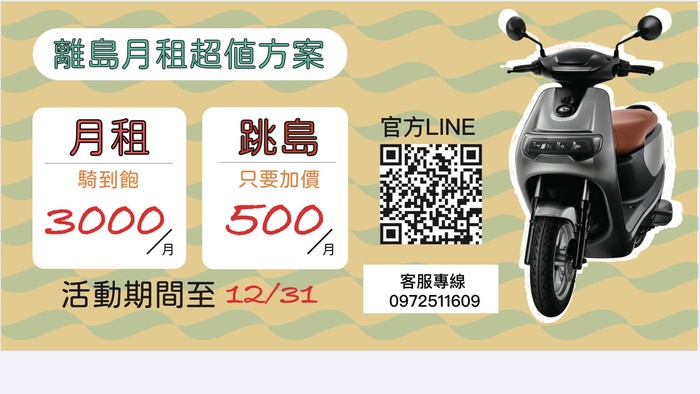 [包月方案] 馬祖電動機車-包月跳島! --閱讀人次 : 1678