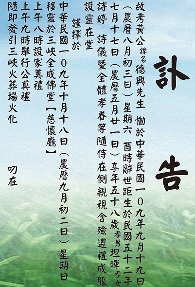 故考黃公德興先生訃告