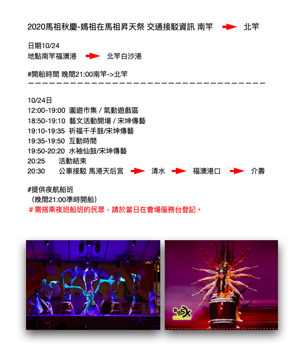 媽祖在馬祖昇天祭 交通接駁資訊