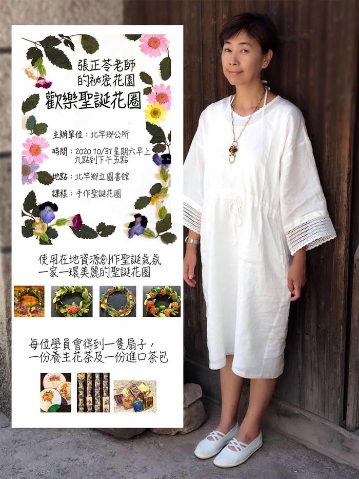 『聖誕花圈』綠起外國,代表傳遞光明的使者,使人愉快與充滿期待的象徵。隨著入秋進冬時節,特地邀請張正苓老師以在地花材製做『聖誕花圈』,傳遞愛與期待,讓寒冷的冬天充滿溫暖。