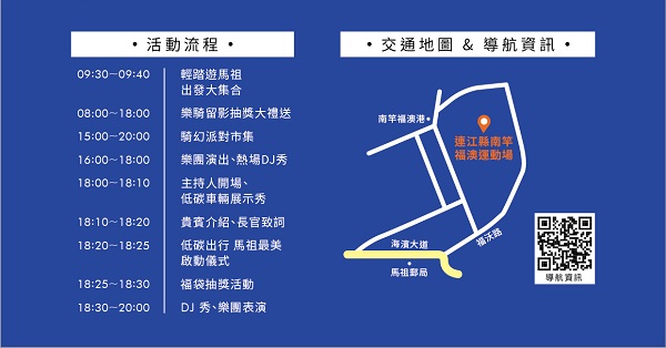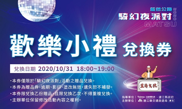 -10/31當天8點至18點,凡是跟自行車一同拍照上傳至FB「馬祖卡蹓趣」活動指定貼文,即可獲得抽獎券一張。