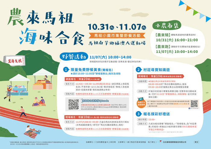 11月7號 小農市集&野餐日 時間10:00--14:00 11月7號馬祖馬拉松...
