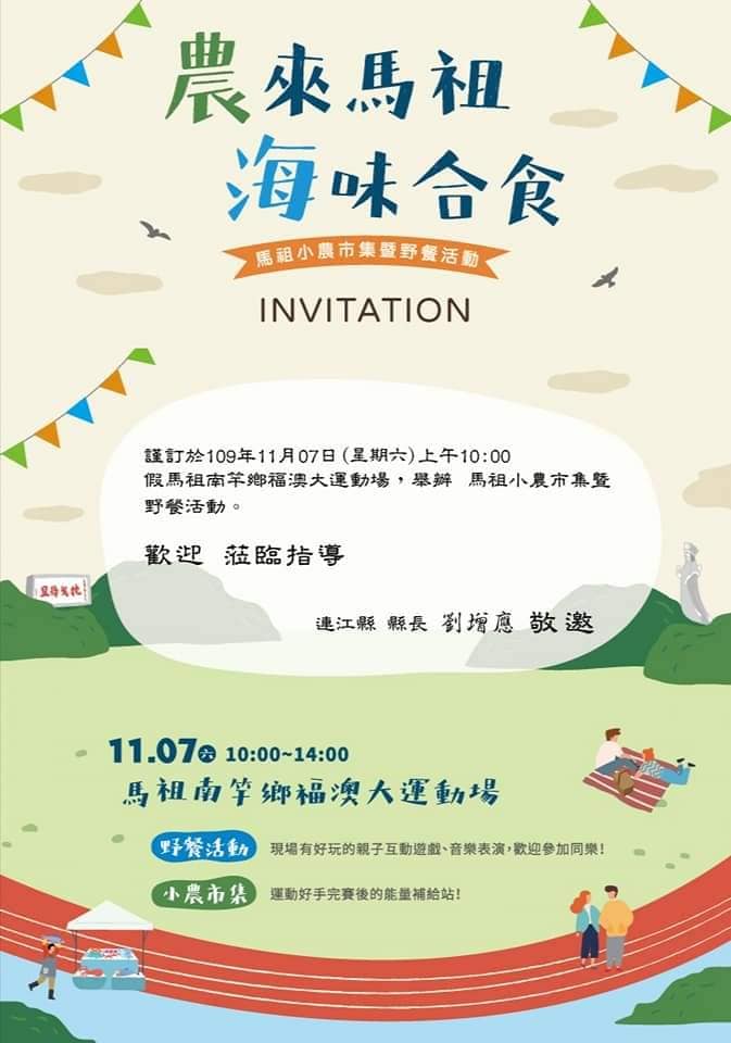 11月7號 小農市集&野餐日 時間10:00--14:00 11月7號馬祖馬拉松...由馬祖有個周小馬 追淚人發佈於 2020年11月3日 星期二