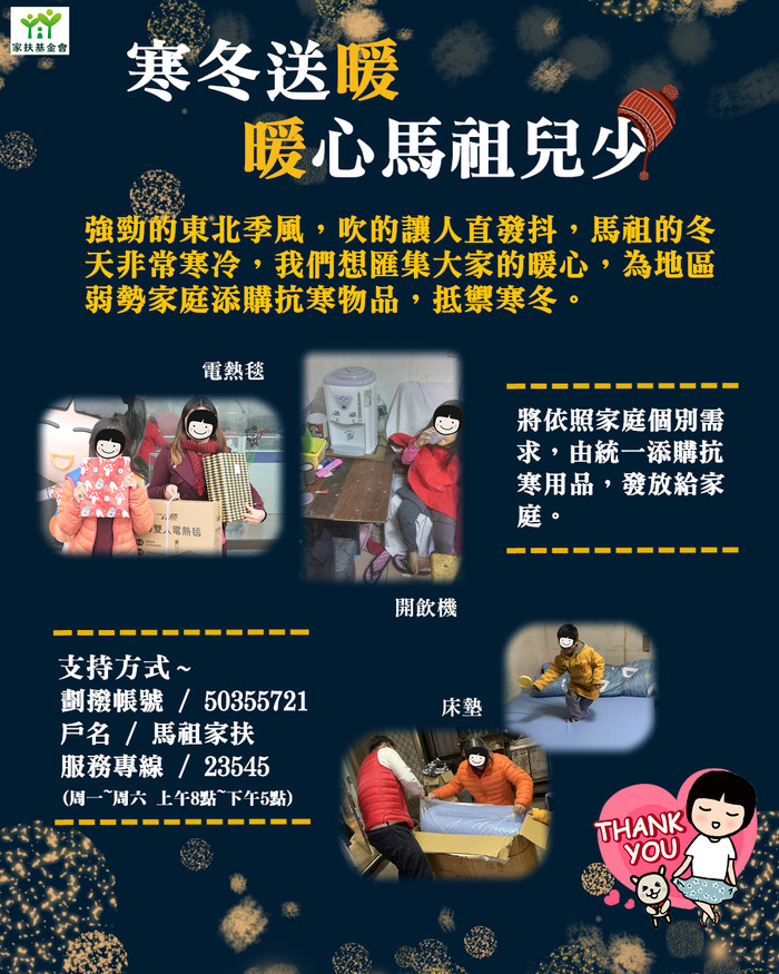 戶名:馬祖家扶,指定捐款寒冬送暖活動