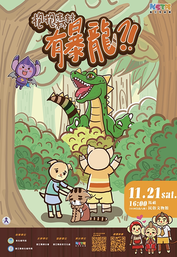 109年11月21日下午4點在民俗文物館演藝廳演出,親子劇《不得了啦!抱抱森林有暴龍!》皮皮歷險記4。
