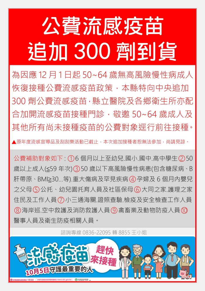 公費流感疫苗到貨,12月起開放接種