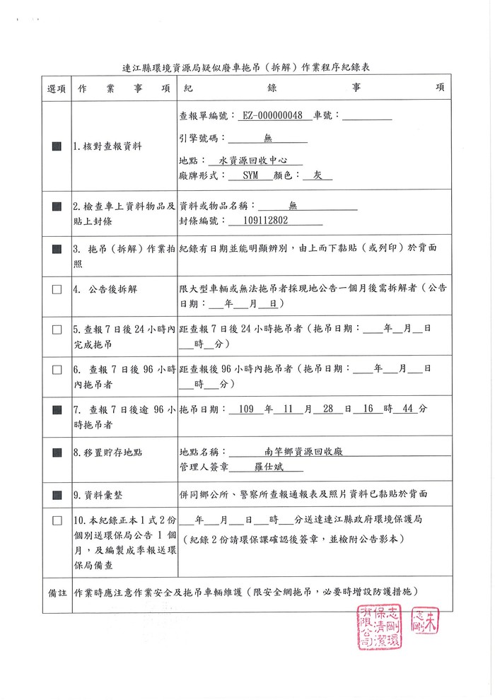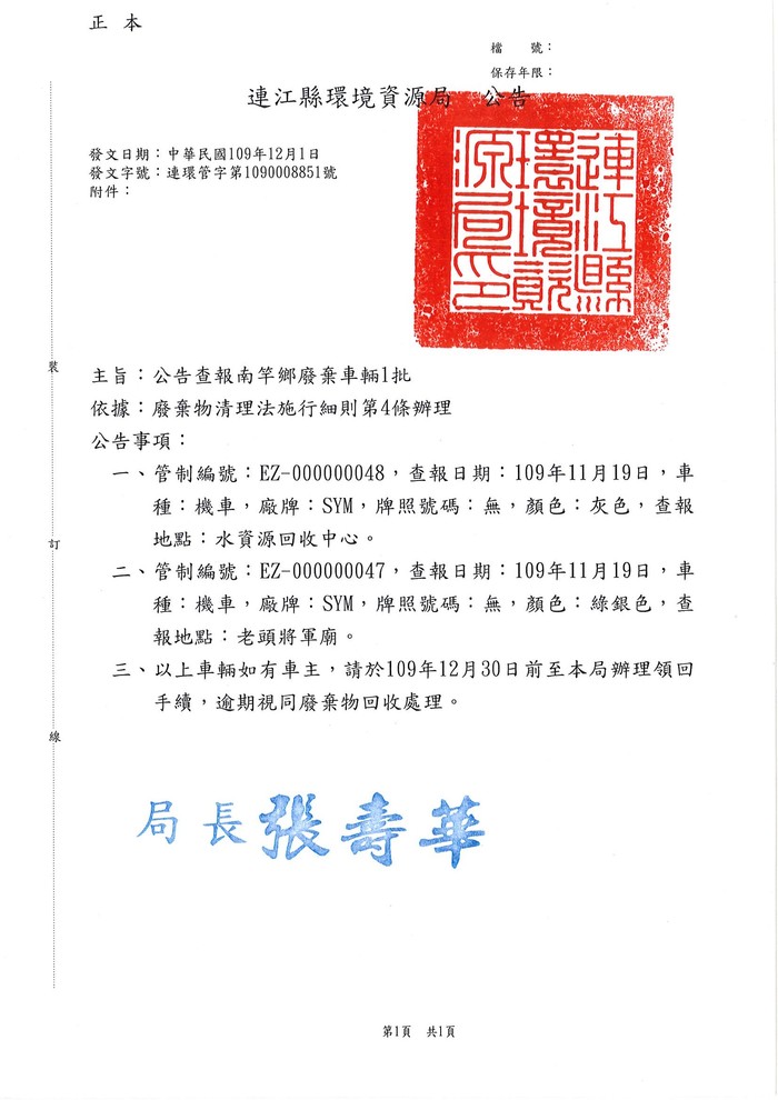公告查報南竿鄉廢棄車輛1批