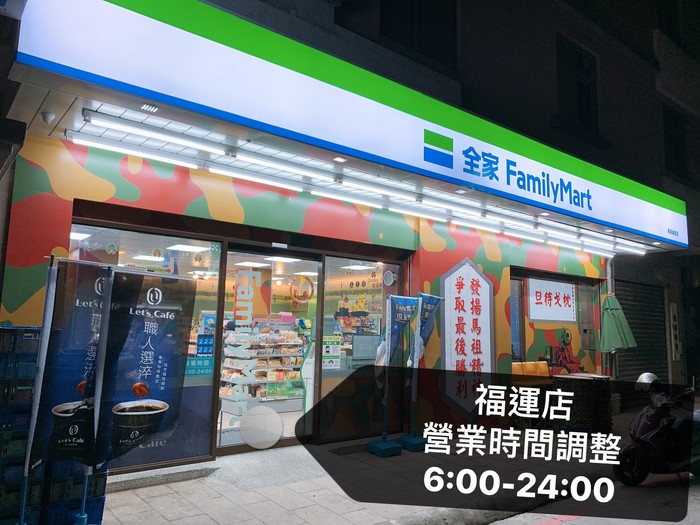 全家便利商店 福運店營業時間調整