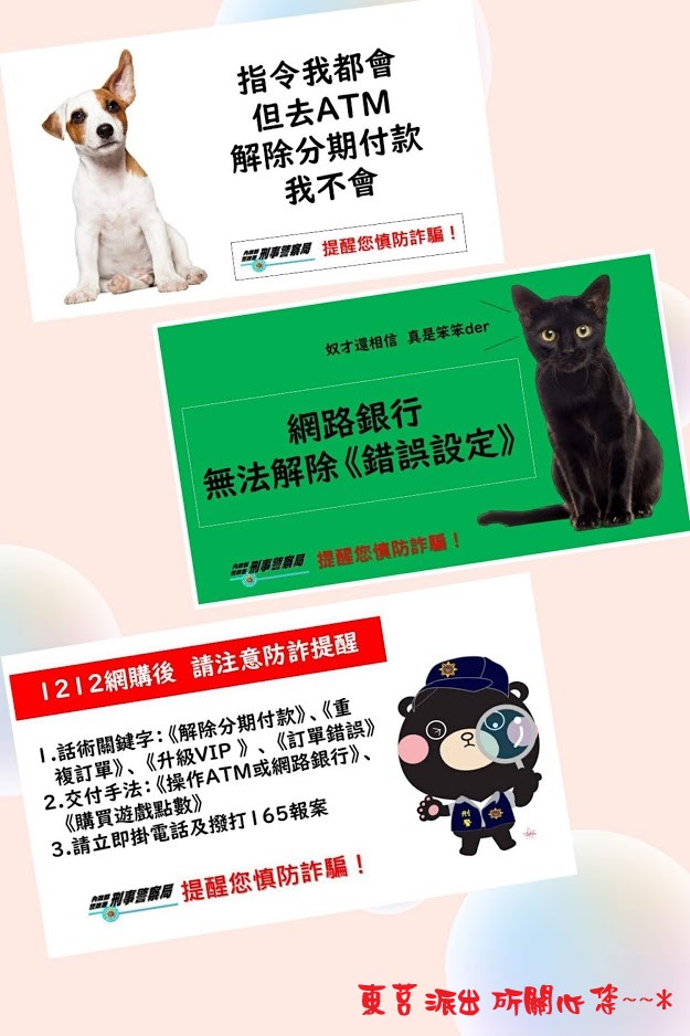 請切記這些毛小孩的提醒(dog)(cat),當您聽到下列關鍵字,請不要理會並聯繫165。