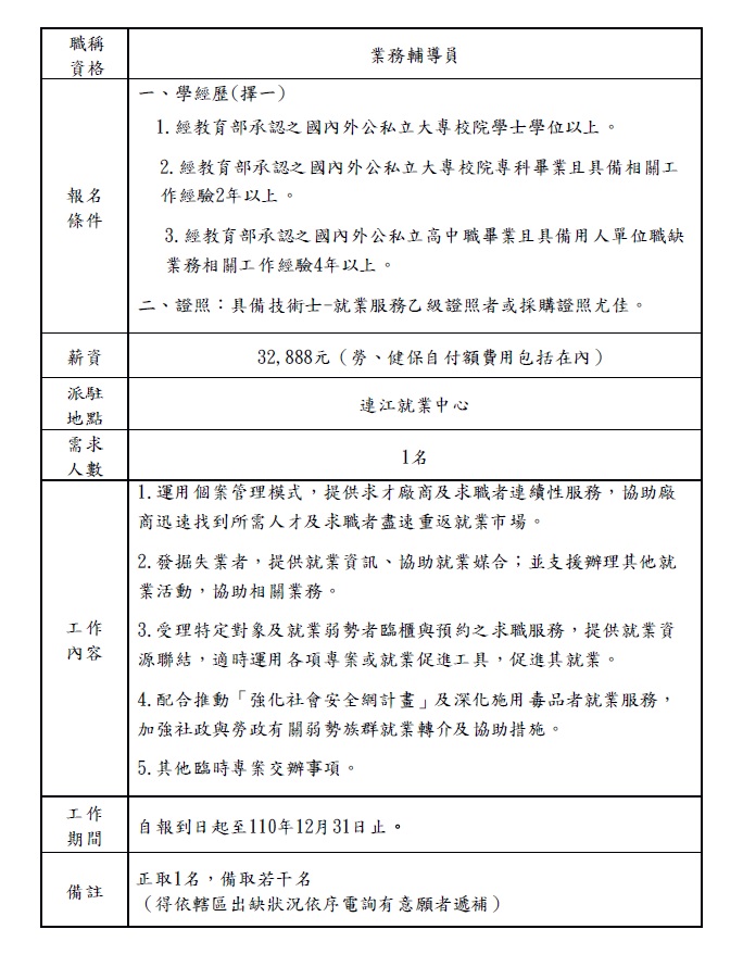 4.依據招募簡章業務輔導員報名條件為主,並依報考職務檢附相關工作經歷證明。