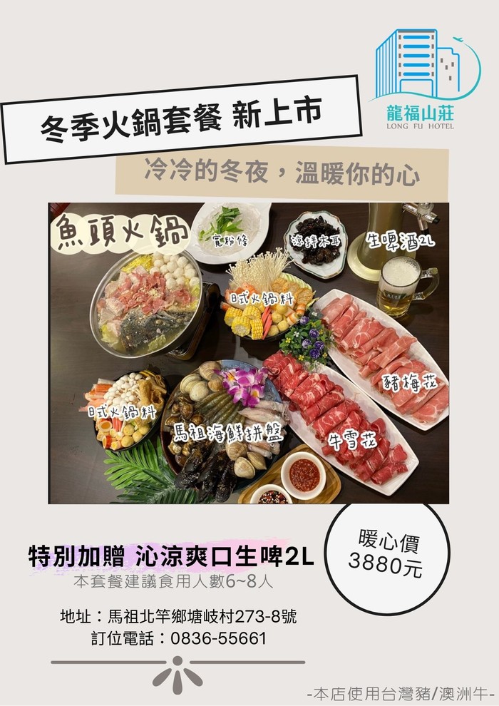 龍福山莊推出冬季火鍋套餐~