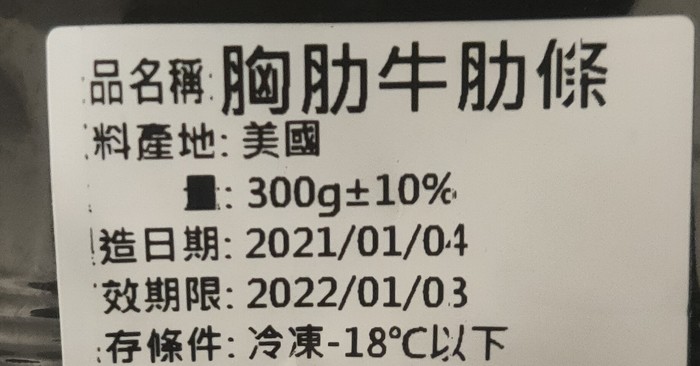 胸肋牛肋條320元/份