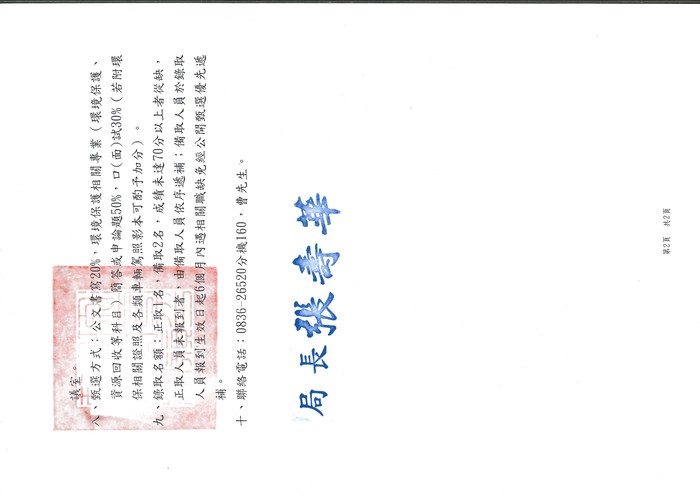 十、聯絡電話:0836-26520分機160,曹先生。