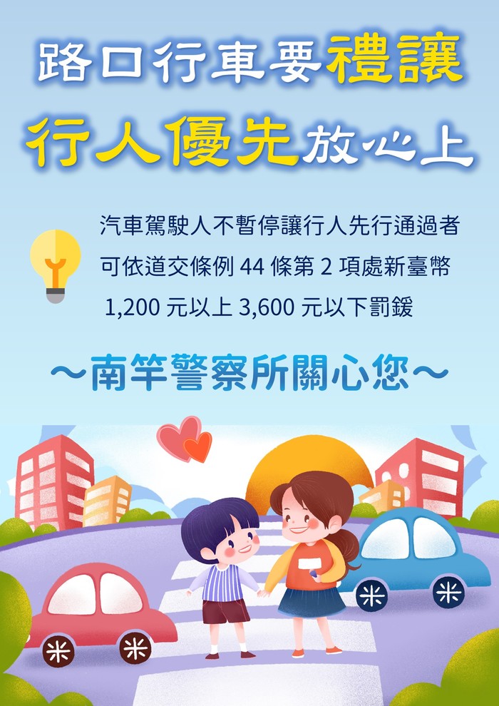 【路口行車要禮讓,行人優先放心上!】