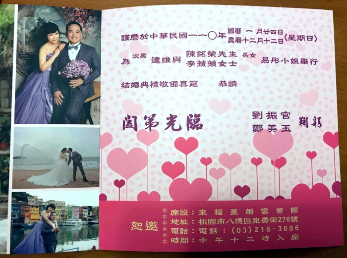 北竿劉達維娶嬌妻 桃園八德來福星舉辦婚宴(林芝騫臉書) --閱讀人次 : 964