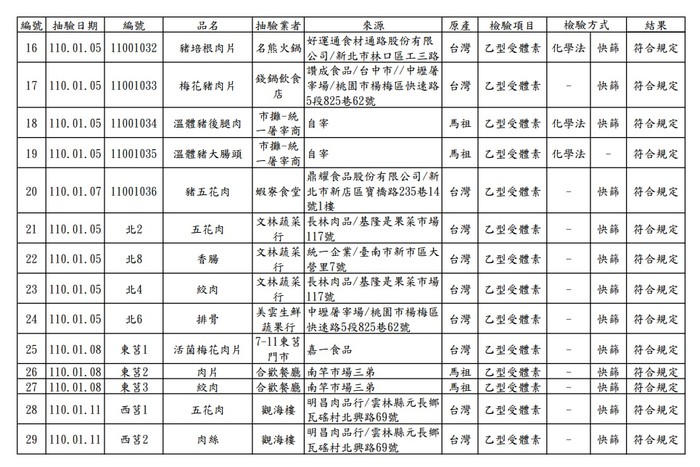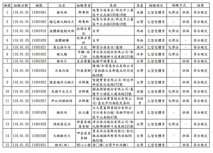 衛福局自去年12月起至今年1月28日全數完成輔導轄內相關食品製造及加工業者、販售業者、直接供應飲食場所餐飲業者完成豬肉原產地標示,讓業者知悉本局落實標示之查核任務。經實地訪查,本縣餐飲業者多使用本地屠宰及台灣溫體豬肉,部分非溫體內臟及冷凍肉品則有使用進口肉類。另自元旦起加強抽驗各鄉販售及餐飲業使用之豬肉及畜肉食品,進行快篩與化學法檢驗,1月共計抽驗34件肉品(包含豬肉及其內臟、加工品、牛肉等),其中5件為進口肉品,結果均與規定相符,鄉親可安心食用。