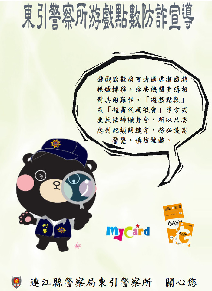 東引警察所提醒您,若遇到買遊戲點數詐騙案,