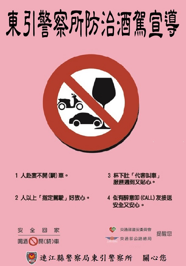 須有充分的休息時間,完全代謝體內酒精,避免造成宿醉駕車。