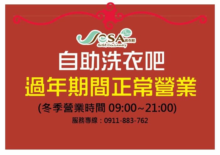 SeSA洗衣吧&力安春節營業公告 --閱讀人次 : 1120 SeSA自助洗衣吧&力安複合式餐坊春節營業公告