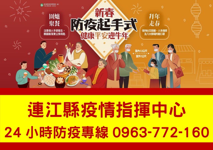 春節期間,防疫不打烊,有任何相關疑問,歡迎撥打本縣疫情指揮中心24小時專線,將有專人為您解答。