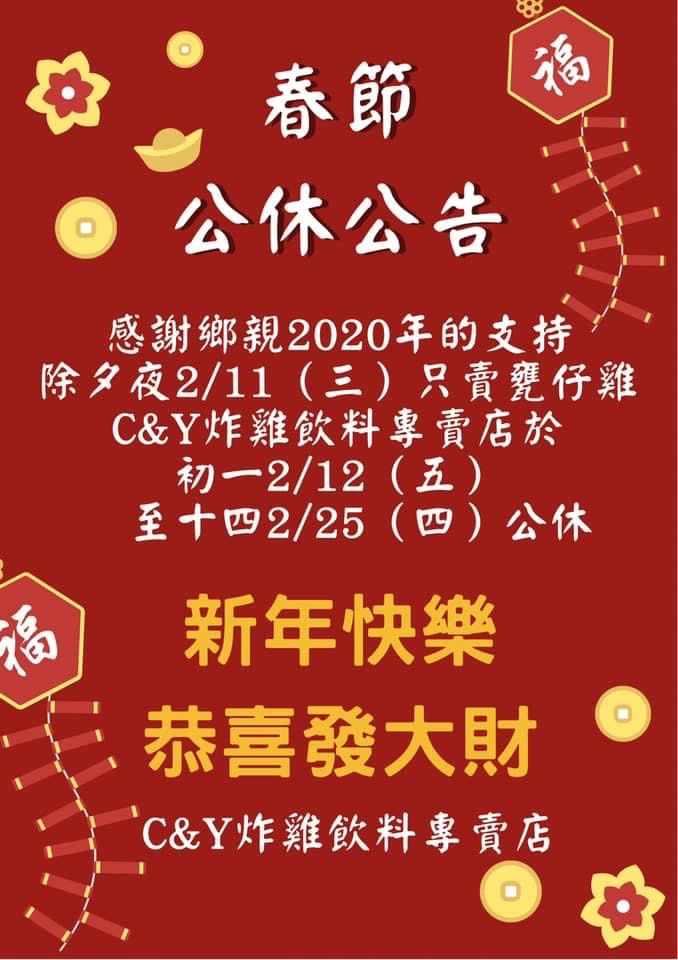 C&Y炸雞飲料專賣店春節期間店休公告