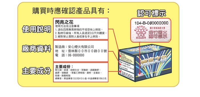 1.選購貼有合格認可標示的一般爆竹煙火。
