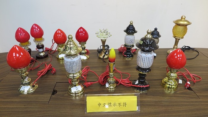 祭祀祖先及神衹是我國民間固有傳統習俗,為表達長年不滅及永放光明之深遠寓意,乃將神明燈置放於神明桌上長時間點亮。為確保消費者權益及加強商品安全,行政院消費者保護處與經濟部標準檢驗局合作,於109年6至7月間購買15件「神明燈」進行「品質項目」及「標示查核」檢測。檢測結果發現,有1件商品品質不符合,2件商品重要零組件不符合,11件商品標示不符合,標準檢驗局提醒消費者購買應施檢驗商品時,應注意是否有貼附「商品檢驗標識」並檢視廠商名稱、地址、型號及規格等各項標示是否清楚。