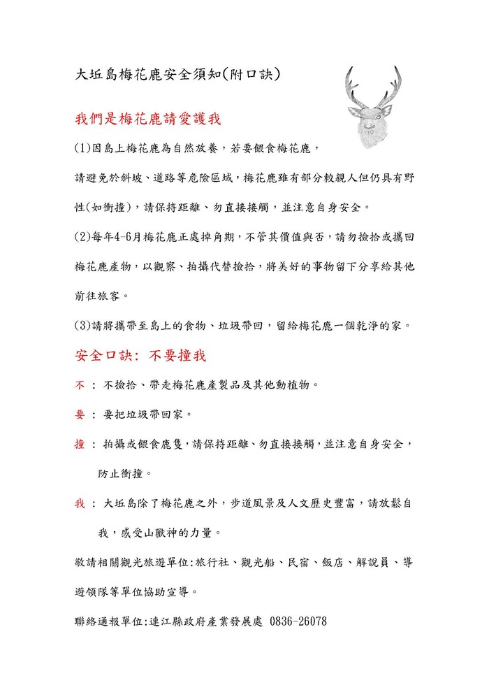 大坵島梅花鹿安全須知