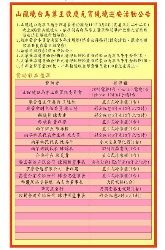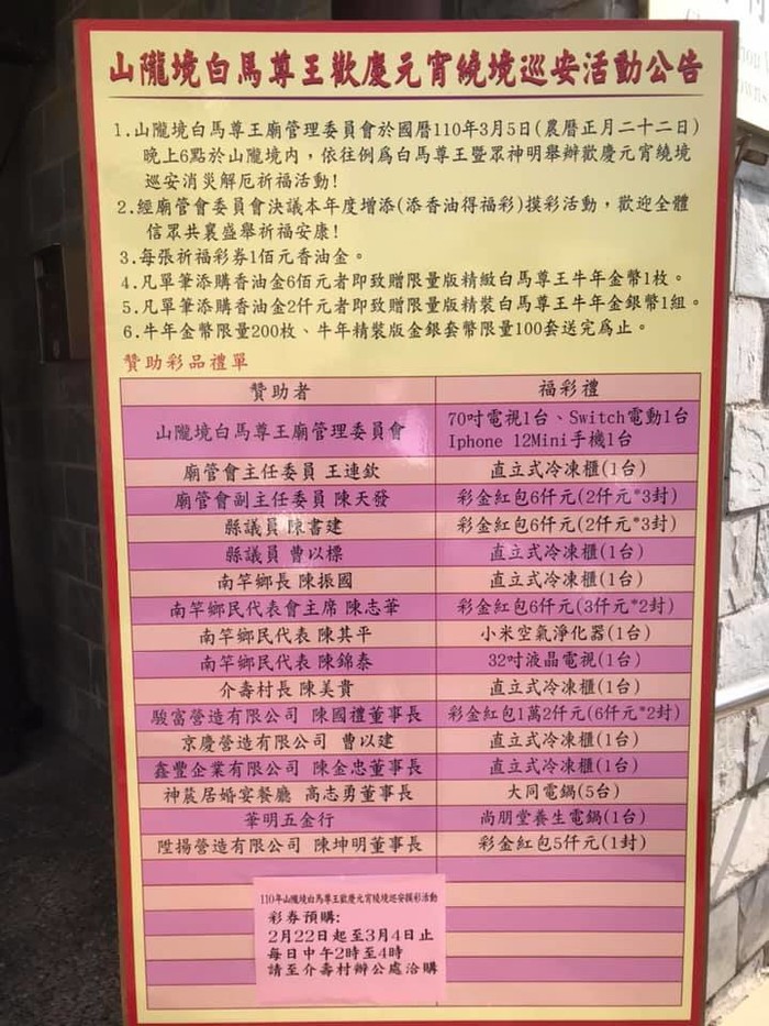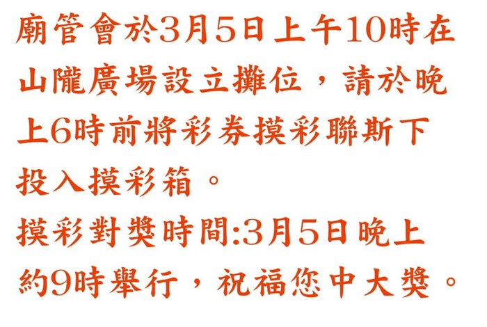 「福瑞山隴」百元添香油,歡樂摸彩活動