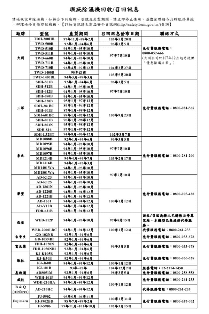 那你家的除濕機是不是召回機種啊?