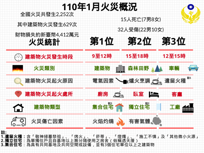 根據消防署統計:110年1月的火災成因大多是電器造成的!