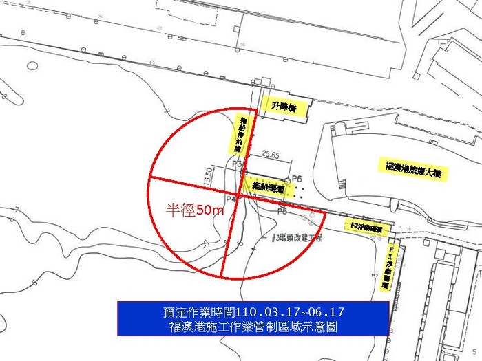 為辦理109年度「福澳碼頭區營運設施改善計畫」暨「青帆碼頭區內堤延長及護岸改建工程」,訂於3/17~6/17辦理福澳港碼頭改建工程, 請往來船舶注意航行安全 。