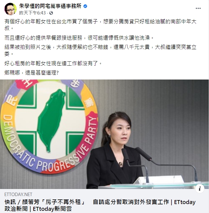 綠營房東房客真奇妙,極可能是阿共鷹謀...身為男人不租怎麼還說三道士很XX