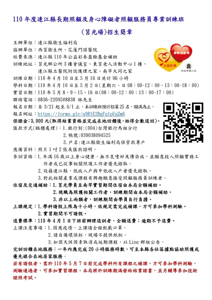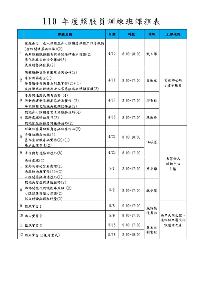 110年照服員訓練班招生簡章(莒光場)