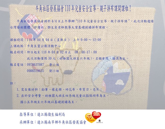 牛角社協親子拼布課04/04開課啦!