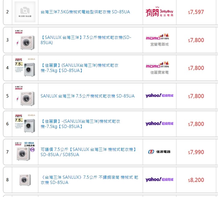 三洋乾衣機7.5公斤 超超優惠 --閱讀人次 : 1259 三洋電器與PC某網同價,部份商品價格更優!!