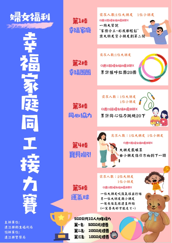 四、辦理單位:連江縣衛生福利局、連江縣新住民家庭服務中心、連江縣家庭福利服務中心