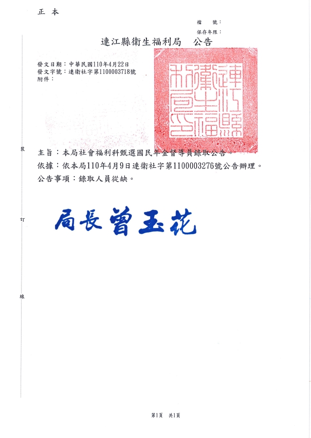 衛福局徵選國民年金督導 錄取從缺