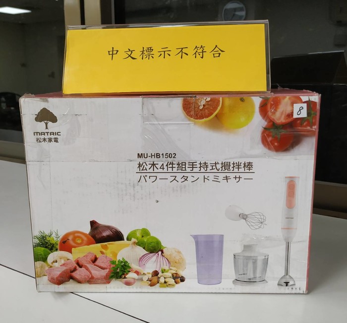 標準檢驗局說明,「中文標示」不符合為未於使用說明書標示適當警語:「於無人看管下,調理機應切斷電源」、「當熱液體倒入食物處理機或調理機時要小心,可能因蒸氣突然噴發導致熱液體外溢」。該局將依「商品檢驗法」第59條規定,通知業者限期改正標示,若屆期未改正者,將處新臺幣10萬元以上100萬元以下罰鍰。