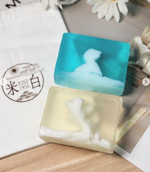 米白馬祖酒粕手工皂打開散發自然的香氣