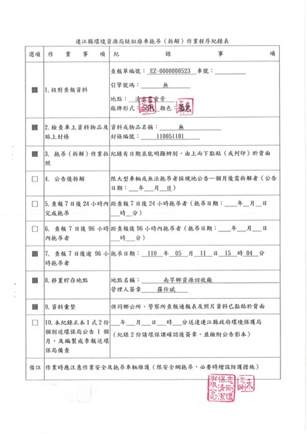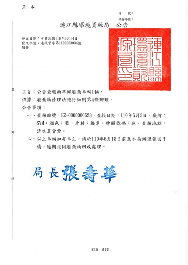 二、以上車輛如有車主,請於110年6月18日前至本局辦理領回手續,逾期視同廢棄物回收處理。