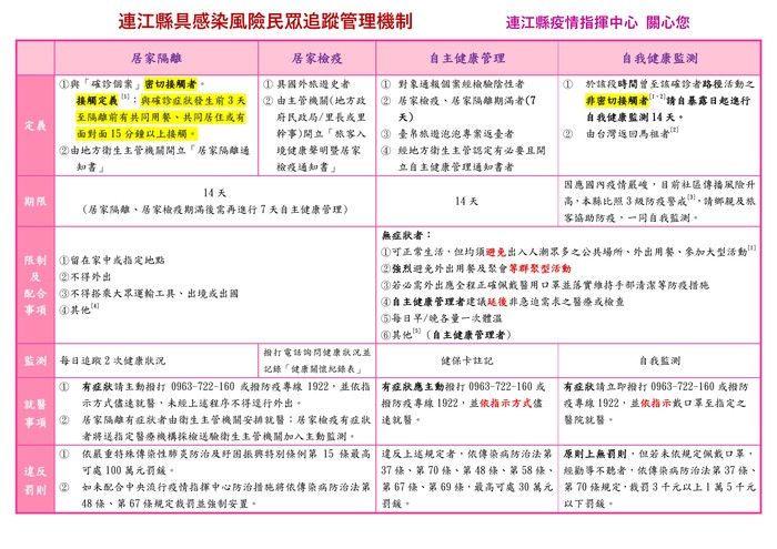 連江縣具感染風險民眾追蹤管理機制