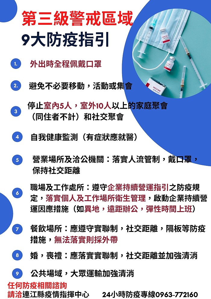 第3級警戒區域9大防疫指引