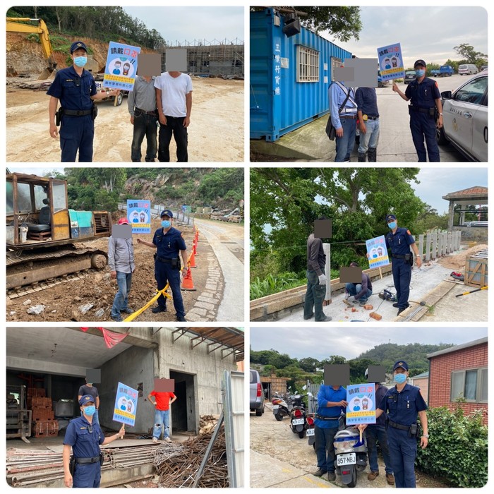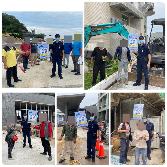 向行人、商家、工地人員們宣導戶外佩戴口罩之措施!